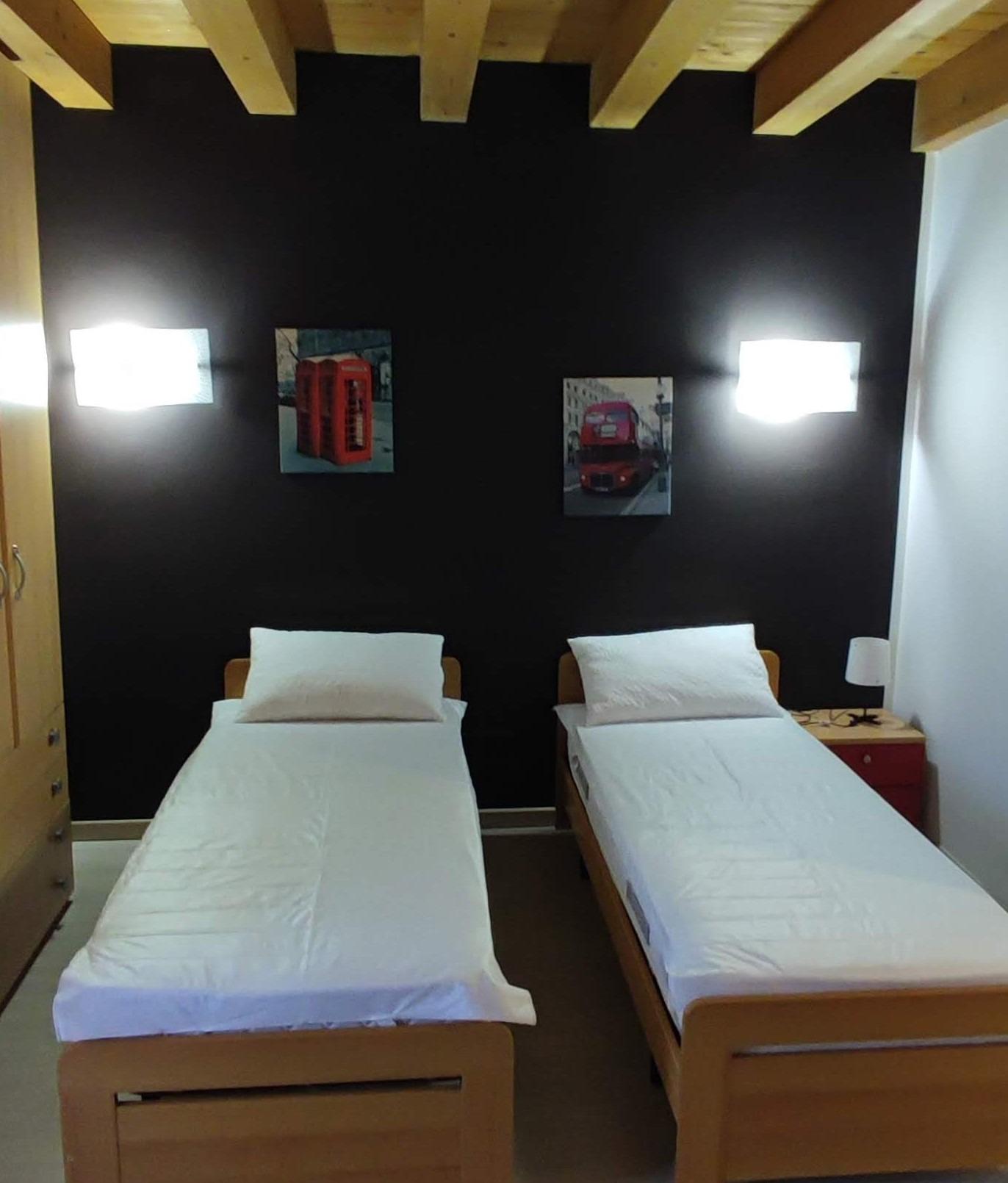 Il primo piano, con pavimento in legno e travi a vista, ospita una camera con due letti singoli (trasformabili in matrimoniale su richiesta) e una culla per i più piccoli. Qui troverete anche il WiFi ultraveloce, una terrazza arredata con tavolino e sedie, e un bagno finestrato con comoda doccia.