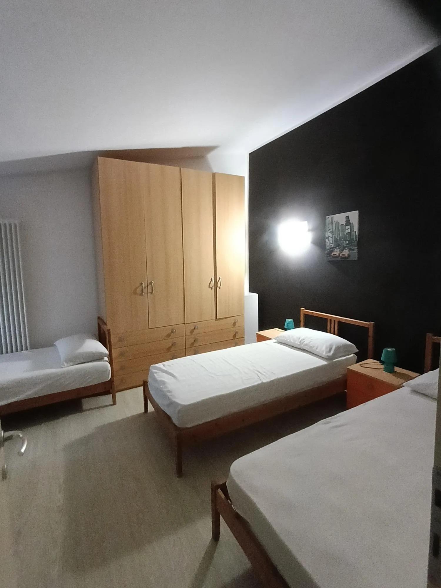 Salendo al secondo piano mansardato, sempre con pavimento in legno, vi attende un’ampia camera con tre letti singoli e un secondo bagno finestrato dotato di vasca.